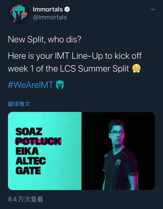IMT战队官宣了夏季赛大名单,打算从2020LCS夏季赛的第一周开始,不启用他们的老将打野Xmithie。在首发名单中取而代之的是Potluck选手。