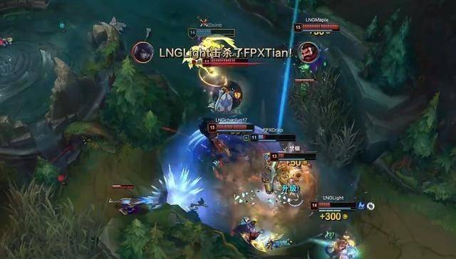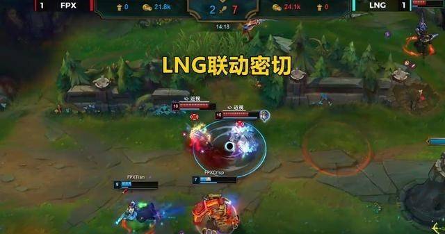 11分钟FPX想继续做事,入侵蓝野区的时候被LNG包围了,这波FPX阵亡三人,LNG仅阵亡一人;13分钟双方在下路三角草丛再次遭遇,LNG的拉扯做得很好,FPX上下两路先被击杀,随后越塔再击杀了剩余三人,这波打了一个团灭,并且收下了峡谷先锋,此时人头领先7个,经济领先5K左后了。