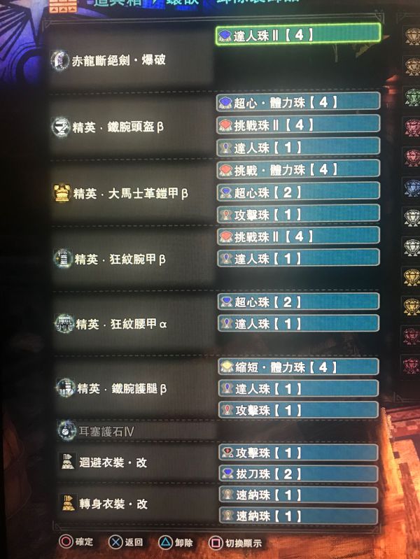 无攻2防音2,配出一套基本没啥多余技能的大剑,跟我有同样情况的非洲朋友可以参考下。