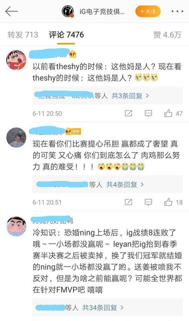 LPL夏季赛6月11日的比赛已经全部结束了,ES2:0轻松战胜DMO,WE2:0战胜IG,而IG在众多粉丝的期待下,夏季赛又是首战失利。还是2;0这样惨败,更是被玩家称为永远不加班的IG战队。很多粉丝更是对IG彻底失望,在IG官博评论下怒喷。