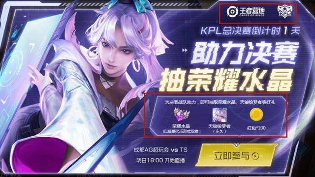 除此以外,在KPL总决赛的助威中,你是可以获得免费的水晶奖励的,这个活动和王者营地之前开放的520评论活动一样,都是在诸多的评论中随机抽取一位玩家,赠送免费的荣耀水晶,不过这次的水晶是直接兑换成等值的道具的,因此很可能发放给玩家的是积分等,能免费抽到水晶也是比较爽的,不过假设连这个活动都不知道,想抽中就更不可能了。
