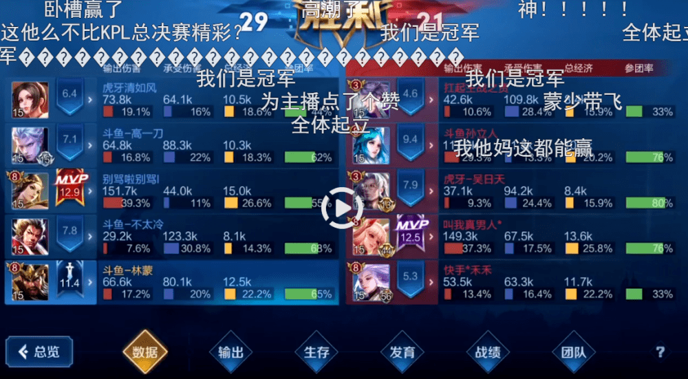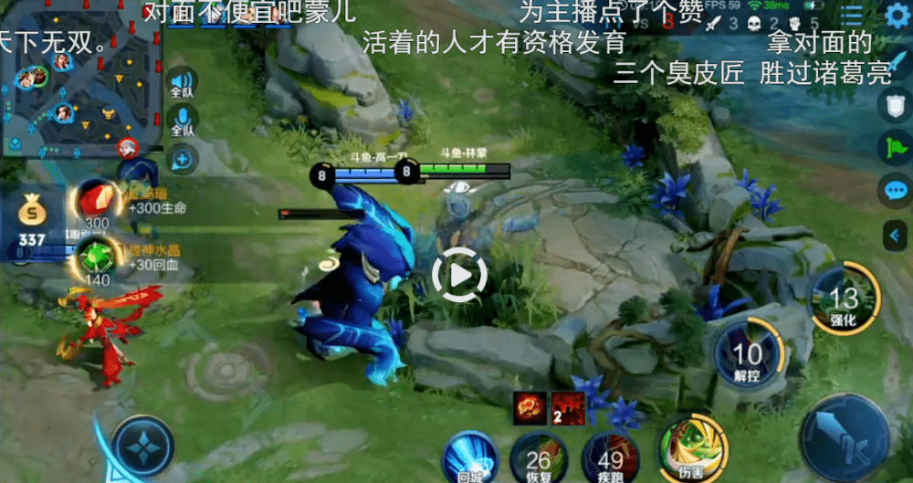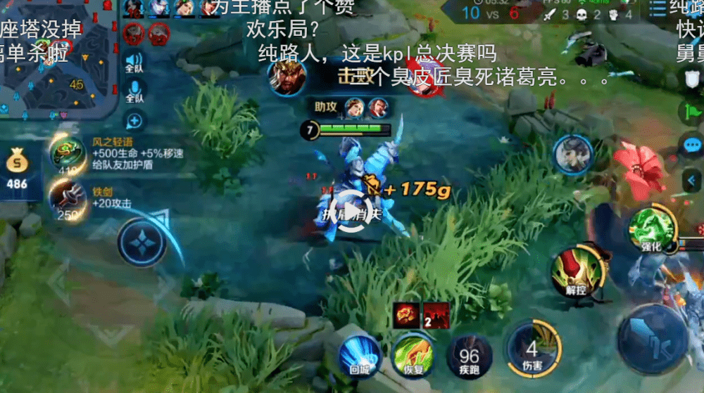 随后中路又打架林蒙下路清兵线喊着关羽提着刀来了, 这波团战林蒙各种指挥,弹幕直呼纯路人,这是KPL总决赛吗?越塔了越塔了来了来了来了,回头一刀收割云中君,随后不断控制刘备配合虞姬击杀。评论区说着三菜聚首,天下无双。
