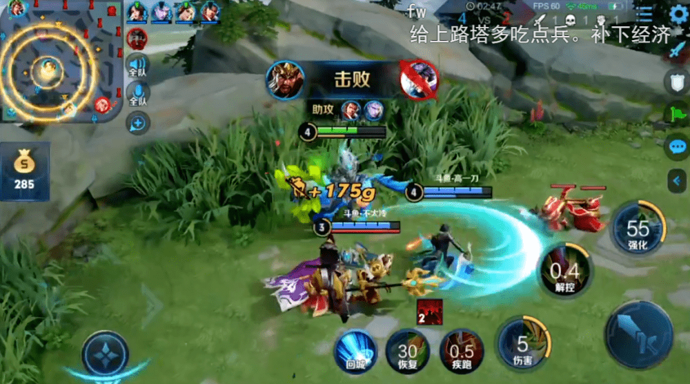 在2分30秒时林蒙在上路林蒙关羽,高一刀凯,杀手不太冷,三兄弟抓一个刘邦,林蒙关羽推的是不错,一个顶将刘邦的大招给打断了,随后一直不断的输出林蒙和高一刀都想着拿刘邦的人头,随后林蒙一刀带走了刘邦的人头。