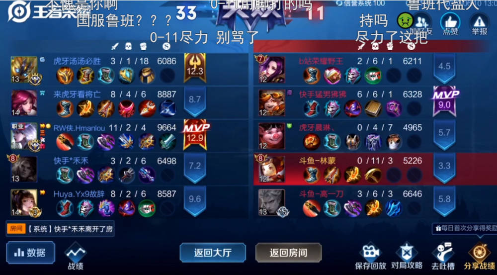 打到了最后果然林蒙以一手0-11-3的鲁班七号成为全场的亮点,哈哈去到哪里死到哪里,他也说着不能选小鲁班的,选鲁班是个败笔。