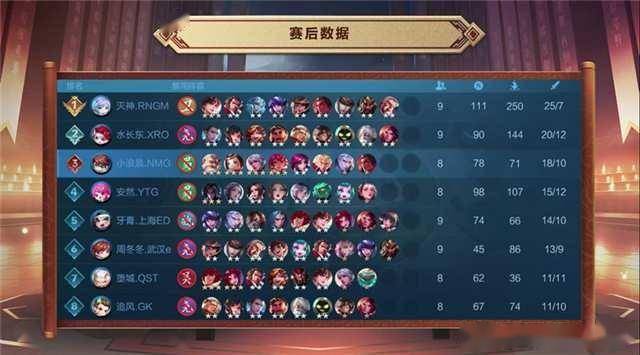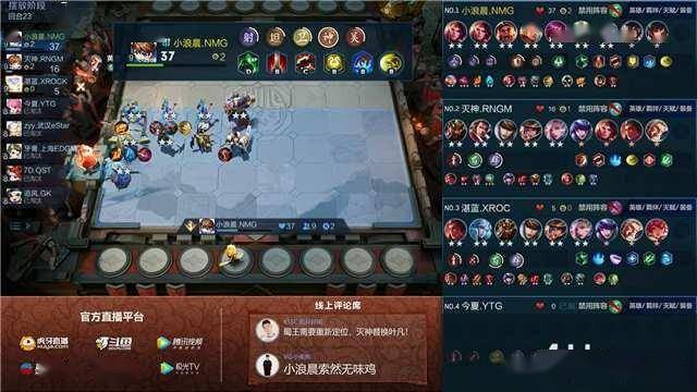 开局三家选手禁用蜀国阵容,三家选手禁用尧天阵容。7回合,NMG.小浪晨满血五连胜。12回合,GK.追风七连败,血量降至46点。14回合,NMG.小浪晨满血十一连胜。16回合,上海EDGM.牙膏七连败,血量降至9点。17回合,GK.追风第八名被淘汰。QST.7D第七名被淘汰。上海EDGM.牙膏第六名被淘汰。18回合,NMG.小浪晨十三连胜被断。19回合,武汉eStar.zyy第五名被淘汰。22回合,YTG.今夏第四名被淘汰。23回合,XROCK.湛蓝第三名被淘汰,RNGM.灭神第二名被淘汰,NMG.小浪晨决赛圈所向披靡,同时抬走两家,成功登顶。