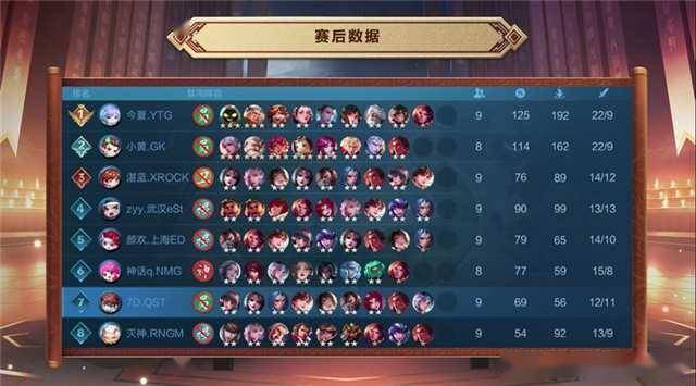 开局三家选手禁用蜀国阵容,两家选手禁用尧天阵容。7回合,YTG.曹老大、XROCK.水长东满血五连胜。8回合,武汉eStar.易老湿五连败,血量降至69点。11回合,YTG.曹老大满血八连胜。14回合,GK.E神五连败,血量降至33点。17回合,武汉eStar.易老湿血量降至14点。18回合,XROCK.水长东第八名被淘汰。武汉eStar.易老湿第七名被淘汰。19回合,RNGM.俊仔八连胜,血量高达76点。22回合,上海EDGM.颜欢第六名被淘汰。23回合,NMG.神话q第五名被淘汰。QST.晚月第四名被淘汰。26回合,RNGM.俊仔刷出三星后羿。GK.E神第三名被淘汰。28回合,YTG.曹老大绝地反击天赋被触发。29回合,RNGM.俊仔决赛圈四连胜狂压YTG.曹老大血量,三星后羿暴力输出轻松登顶。
