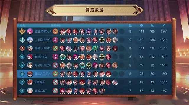 开局两家禁用蜀国阵容,两家禁用尧天阵容。2回合,上海EDGM.墨翟刷出两星狄仁杰。4回合,XROCK.痘痘强拉人口争连胜。8回合,XROCK.痘痘满血六连胜。11回合,武汉eStar.周冬冬刷出二星后羿。12回合,NMG.二师兄七连败,血量降至41点。19回合,GK.E神六连败,血量降至4点。21回合,QST.堕城第八名被淘汰。GK.E神第七名被淘汰。22回合,RNGM.魔法之风第六名被淘汰。24回合,武汉eStar.周冬冬第五名被淘汰。YTG.安然第四名被淘汰。26回合,上海EDGM.墨翟第三名被淘汰。27回合,XROCK.痘痘绝地反击天被触发。28回合,NMG.二师兄绝地反击天赋被触发。29回合,XROCK.痘痘最后一回合刷出三星李白,丝血李白极限开出大招,绝地翻盘!成功登顶!