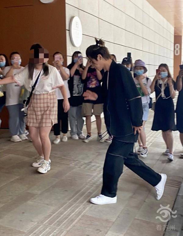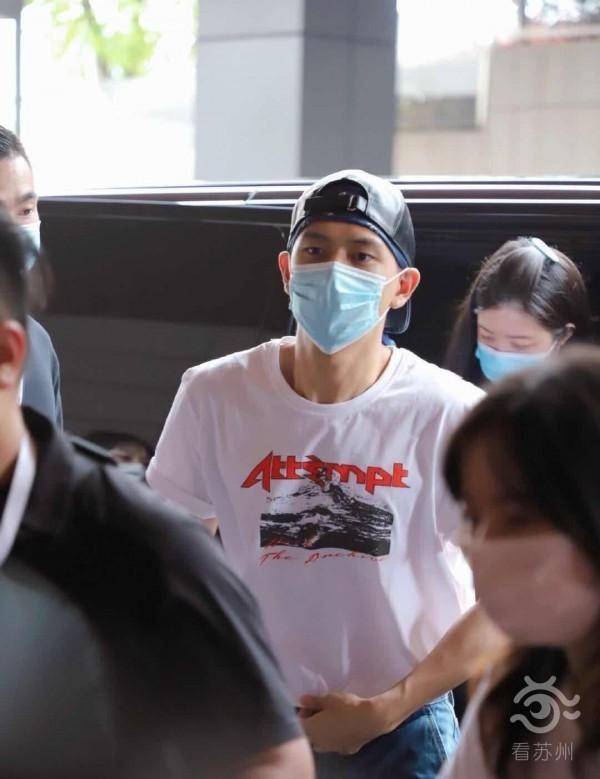 就在刚刚,李现现身苏州高新区文体中心,白T恤配牛仔裤,头巾加反戴帽子,一身嘻哈装扮的他看起来相当酷!