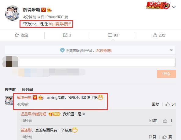 赛后解说米勒看到阿水的EZ后,也是忍不住调侃:举报EZ,谢谢!不得不说,阿水这把是真的Carry,各种一人追三人,太真实了!最后,喜欢观看LPL夏季赛的玩家,别忘了去虎牙观看,蓝光高清,体验更佳,同时还会有姿态,Letme和香锅等人客串解说哦!