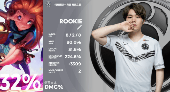 因为TheShy和Ning的状态稳住了,找回了以前的感觉,本来就很稳的Rookie直接起飞了。