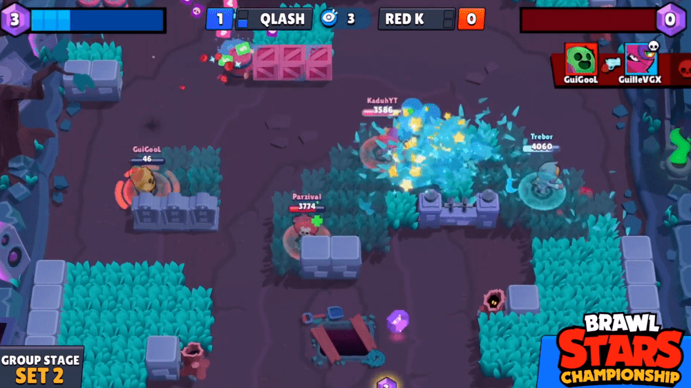 此时双方宝石数量已经持平,地上掉落了两颗宝石,双方都有意识去抢夺,但是QL这边沙迪开大的前提下,RED的视野非常有限。QL在拥有视野优势的前提下,直接击杀了RED两名成员,宝石数量也高达17颗。比赛也毫无悬念的再次被QL拿下。