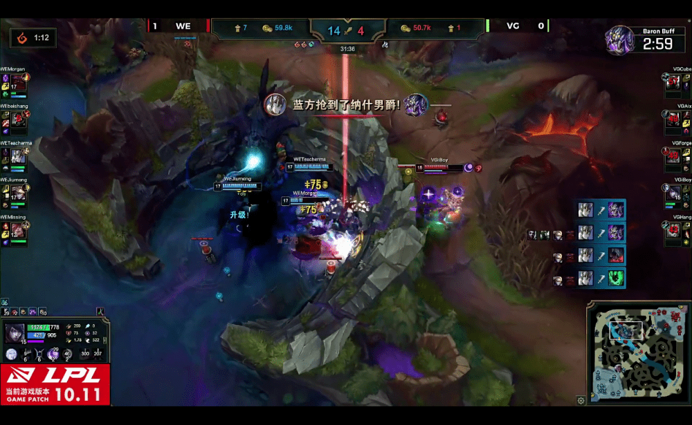 [18:40] 剑魔野区被抓身亡,WE拿下第二头峡谷先锋。
