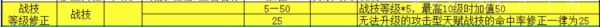 战技等级修正等于战技等级*5,此时我们的战技一般是7级,所以修正值等于35。而天赋技一律为25。