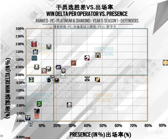 从上面的论述中容易看出,Clash是可以最大限度针对进攻方远距离架枪优势和高输出武器对枪优势的干员。而在排位环境下对枪能力被过分强调,Clash就成了十分让人讨厌的存在,尽管……她不一定强。从选胜率上看,这玩意位居防守方倒数第二,倒数第一大家应该知道是谁8。