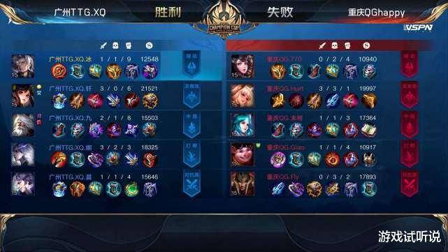 只是最后2局TTG.XQ没有再给QGhappy机会,尤其是巅峰对决,多核心打法让QGhappy防不胜防,刘邦加镜的切入型加上姜子牙和鲁班大师的“弹弓”打法,QGhappy真的尽力了,但是还是无法挽回败局,最终3-4不敌TTG.XQ,淘汰到败者组。