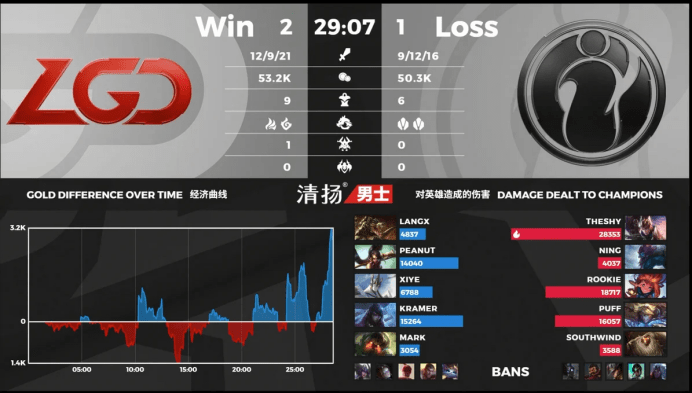 比起之前的比赛来说,IG在和LGD比赛的状态并不差。但是Theshy虽然不再犯病,IG的其他队友却接二连三的又出现了问题。连rookie这个鸡真主都在最后一把发生严重失误,被LGD抓住机会,直接一波解释比赛。可以说,在这个BO3中,IG每个人的小失误不断。