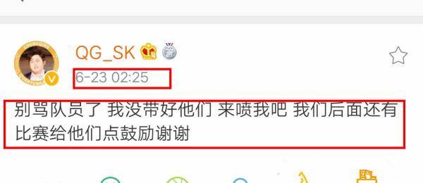 SK为了保护队友,主动承担责任,表示,别骂队友了,来喷我吧!