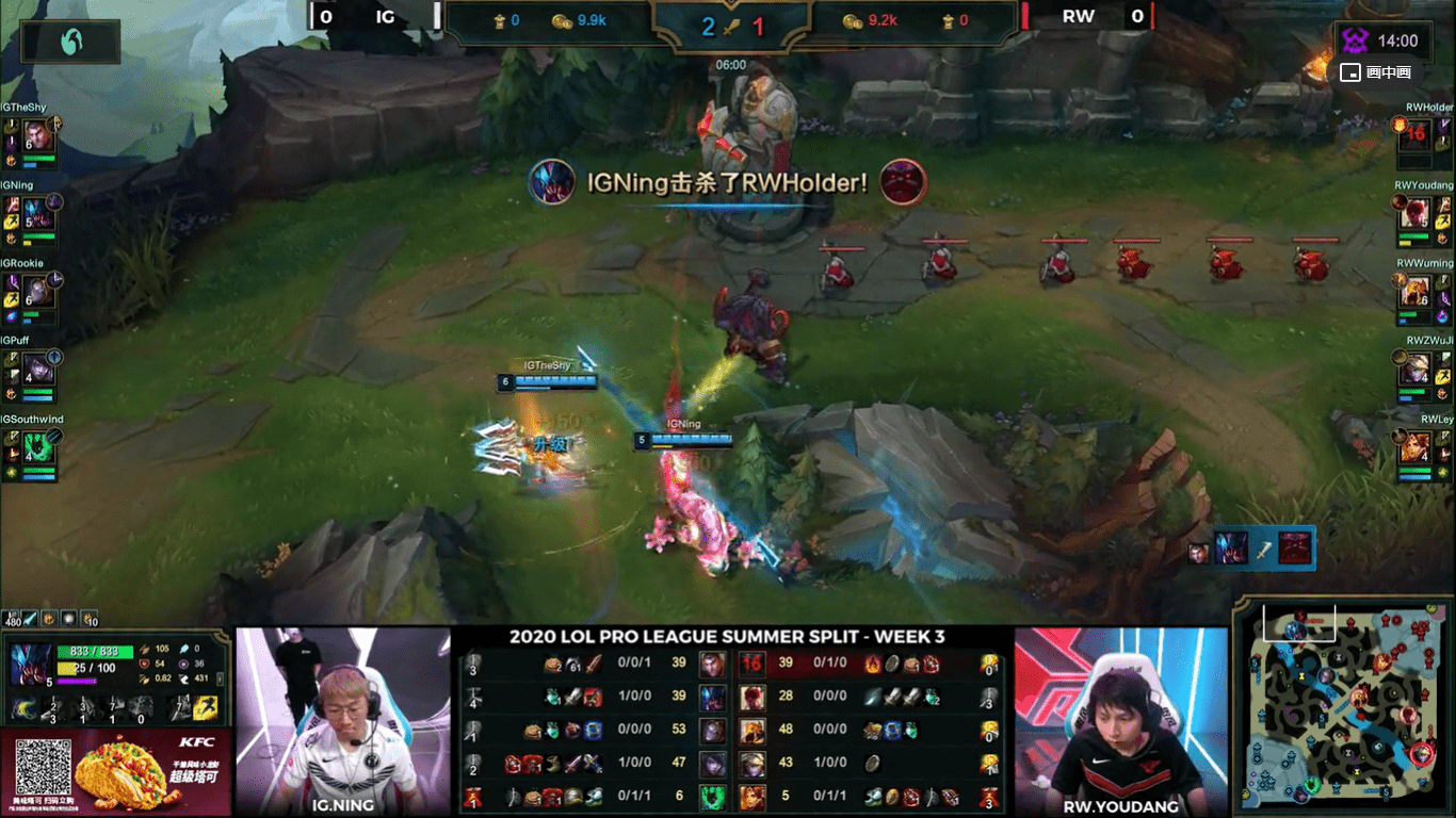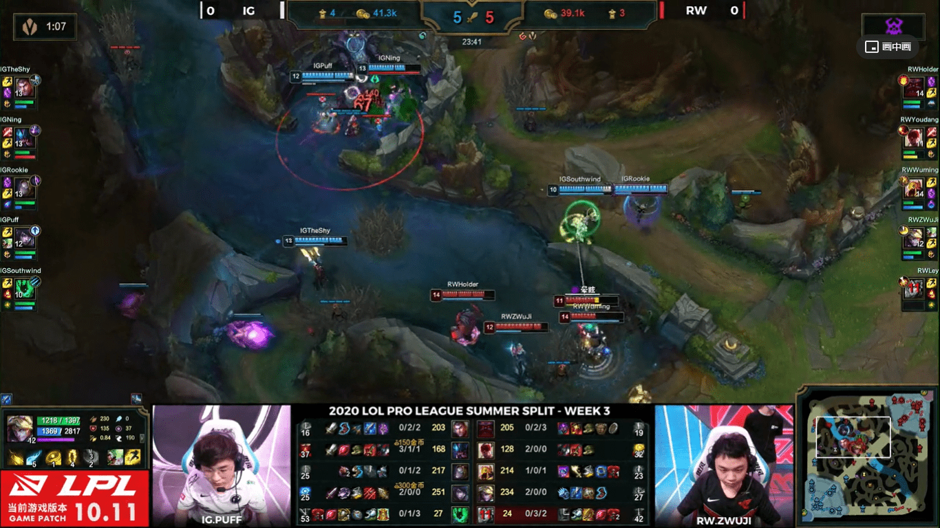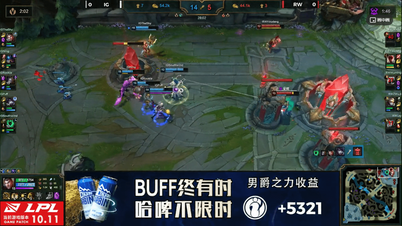 IG前期三线压制RW补刀,团战锤石关键钩子和发条的消耗,帮助IG取得胜利!