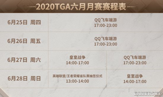 疫情期间,考虑到参赛选手、比赛工作人员以及观赛玩家的健康安全问题,TGA六月月赛依然采用线上赛方式举办。赛事开放多渠道同步直播,以下为月赛时间节点和直播收看渠道: