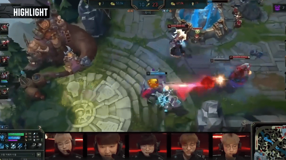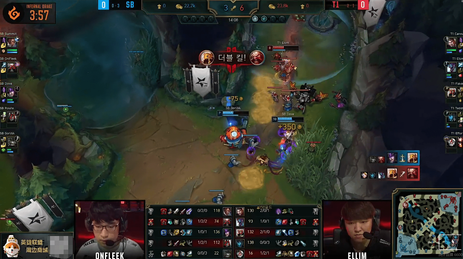 转线到上路的机长卡莉丝塔配合effort机器人,又将summit卢锡安击杀了一次,0-3卢锡安彻底失去了作用,21分钟时T1抓住机会击杀route韦鲁斯,随后借助大龙逼团,将赶来的沙盒成员击杀,稳稳地收下了大龙!
