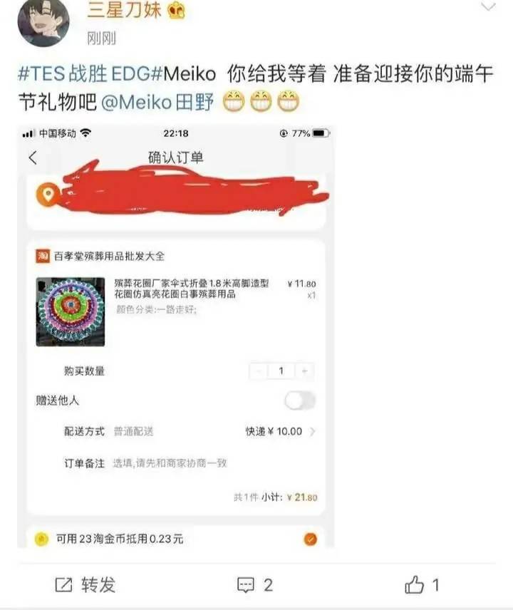 极端黑粉要给Meiko“送花圈”,如果只是在网上吐槽吐槽,大家都可以理解,毕竟他打的是真的有问题,但是你送花圈来咒选手,未免有些太过于极端了。这得双方有多大仇恨才能做出如此极端的反应?难道这就是传说中的“赌狗”赌输了?
