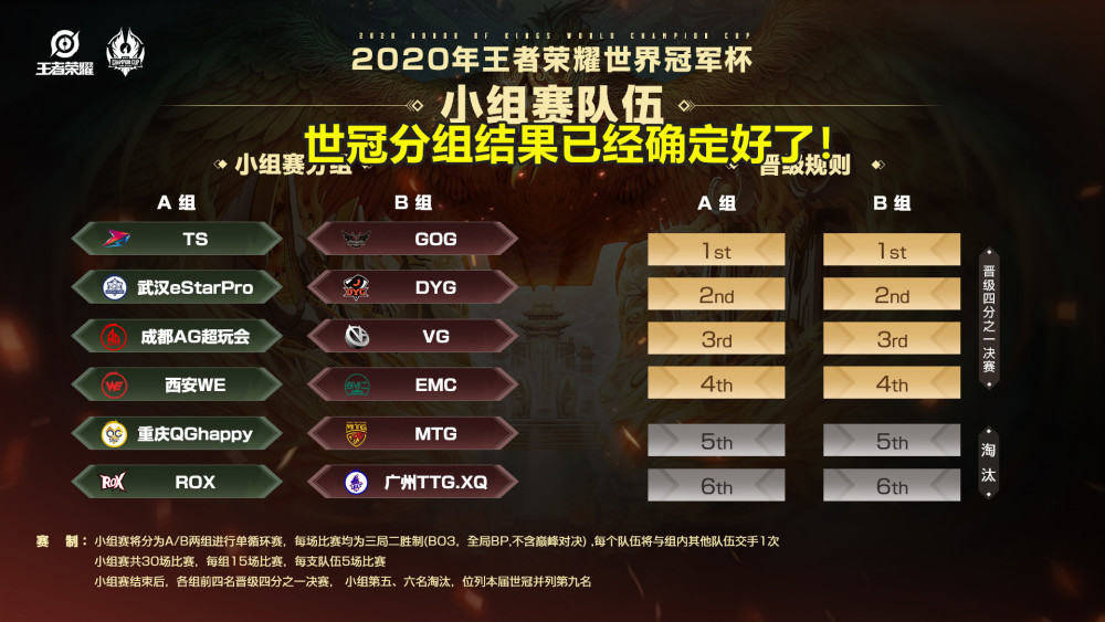 2020年王者荣耀世界冠军杯预选赛圆满落幕,世冠小组赛的分组结果也已经出炉。就分组而言,A组被称作是“死亡之组”,因为有五支KPL战队,还有一个“倒霉蛋”ROX;而B组看着相对轻松不少,只有3支KPL战队,其他3支都是境外战队。就在DYG、XQ、VG这三支战队的粉丝暗暗窃喜的时候,VG选手却直言,不想跟GOG分在同一组,这又是怎么一回事呢?咱们接着往下聊哈!