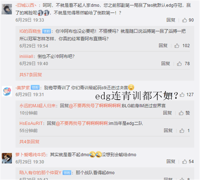 评论中有人调侃说,edg需要商量什么事情,难道是解散事宜吗?不用这么着急,两个小时全打完之后再说也不迟。当了这么久的edg粉丝,不急在这一时了。