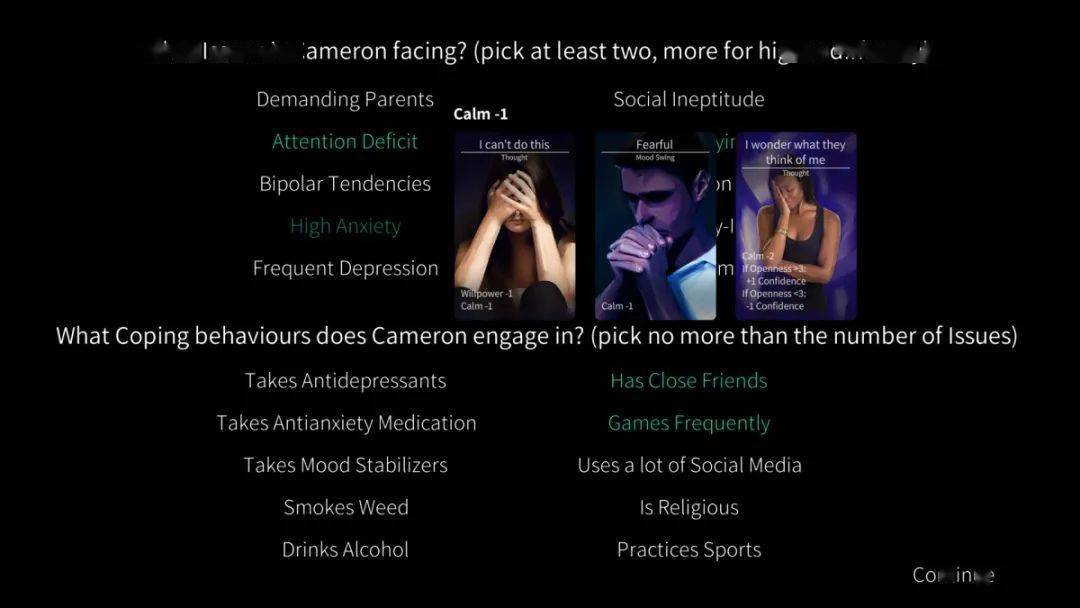 Brain Please Don't 是一款探索现代青少年生活缩影的小游戏,以创新的卡牌构建和独特游戏机制研究一个人内心的动荡、功能障碍以及改善心理状况的手段。你能给年轻的 Cameron 带来更好的生活吗?