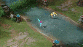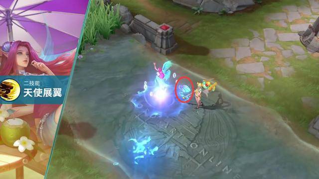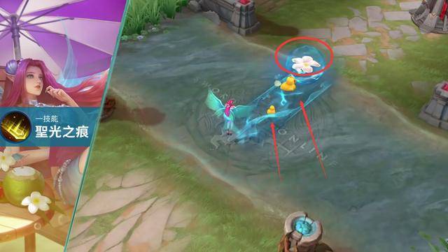 1技能特效如上图所示,释放出来的是一朵花,然后会有小黄鸭跟着出现,特效看起来还有点像大乔的1技能特效呢。