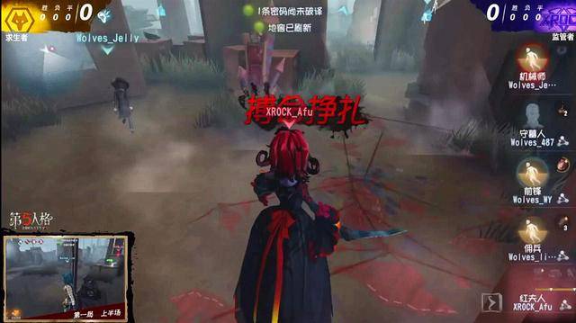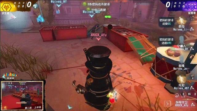上半场:监管者XR红夫人,求生者Wo的机械师、守墓人(双弹)、前锋、佣兵,开局最好抓的机械师出生在厂房,可以说是最舒服的出生点了,红夫人,开局往厂房去,但是半路又转到大门集装箱的电机,看到是佣兵有返回来到小门电机,小门电机是娃娃的,放镜像击倒娃娃,机械师放娃娃在厂房,直接转点到沙包。前期红夫人节奏不合适很好,在厂房地窖刷点交了闪现,把机械师赶到沙包。