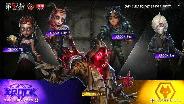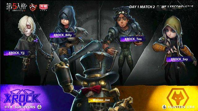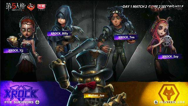 黄衣追咒术师,电机剩下3台,挂咒术师到地下室,前锋来救,楼梯站前锋直接倒地,狼队绝神想拿四杀,前锋交自愈,守墓人倒地,黄衣触手找前锋,前锋牵制黄衣,守墓人补中场电机,电机修的47%,前锋倒地,绝神插眼换闪现,击倒守墓人,拿下四杀,狼队直接获得比赛的胜利。对于下半场,双方就是表演赛了,我们到时候,单独去说。好了第一天第二场比赛就介绍到这里啦,我们下场比赛见。