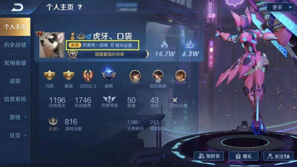 在查看韩涵的个人主页的时候,细心的网友则是发现韩涵不仅加入了这个战队,更是这个战队的副队,要知道在一个队伍中,副队的位置还是非常重要的,因为作为战队的成员,副队也就是协助队长处理战队中的日常事务,本身韩涵的人气也是非常的高。