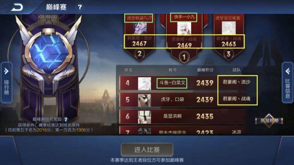 在iOS的巅峰榜上则是有意见非常有意思的事情,巅峰榜对于玩家们来说还是非常有吸引力的,因为在巅峰榜上有名的基本上都是拥有国服英雄的玩家,因此在巅峰榜上有名字的玩家基本上实力都非常的强,而在巅峰榜上,有一个现象则是引起了很多玩家和网友的注意。