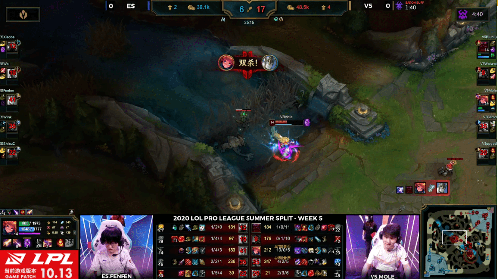 这一局,有重要的角色,几乎不用去说什么,V5的重担佐伊!扛起大旗放肆地输出,pokeES众人,超高的伤害将ES击溃,但是其他的V5队员也表现地很好,但是佐伊的表现更吸引人的眼球!