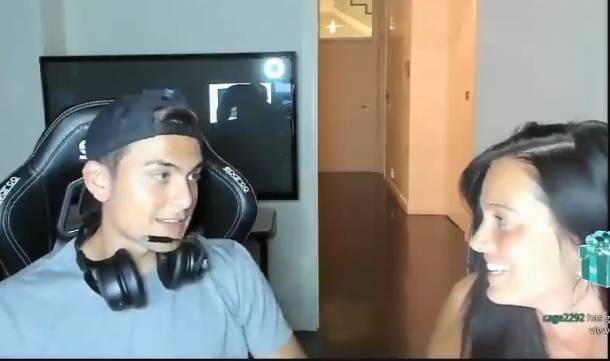 尤文球星迪巴拉直播玩游戏,一旁女友手机响不给看,迪巴拉骂叛徒