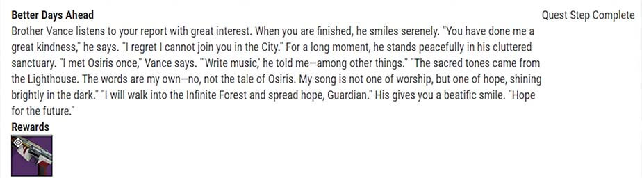 编后语:关于《命运2迁徙移民任务全流程攻略》关于知识就介绍到这里,希望本站内容能让您有所收获,如有疑问可跟帖留言,值班小编第一时间回复。 下一篇内容是有关《仙剑奇侠传系列方块平台免费领取方法》,感兴趣的同学可以点击进去看看。