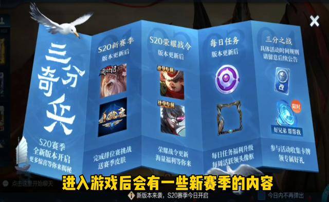 进入游戏后,就会出现一些关于新赛季的活动内容窗口,比如战令奖励等等。而游戏的主界面其实没什么变化,还是蒙恬在正中央。
