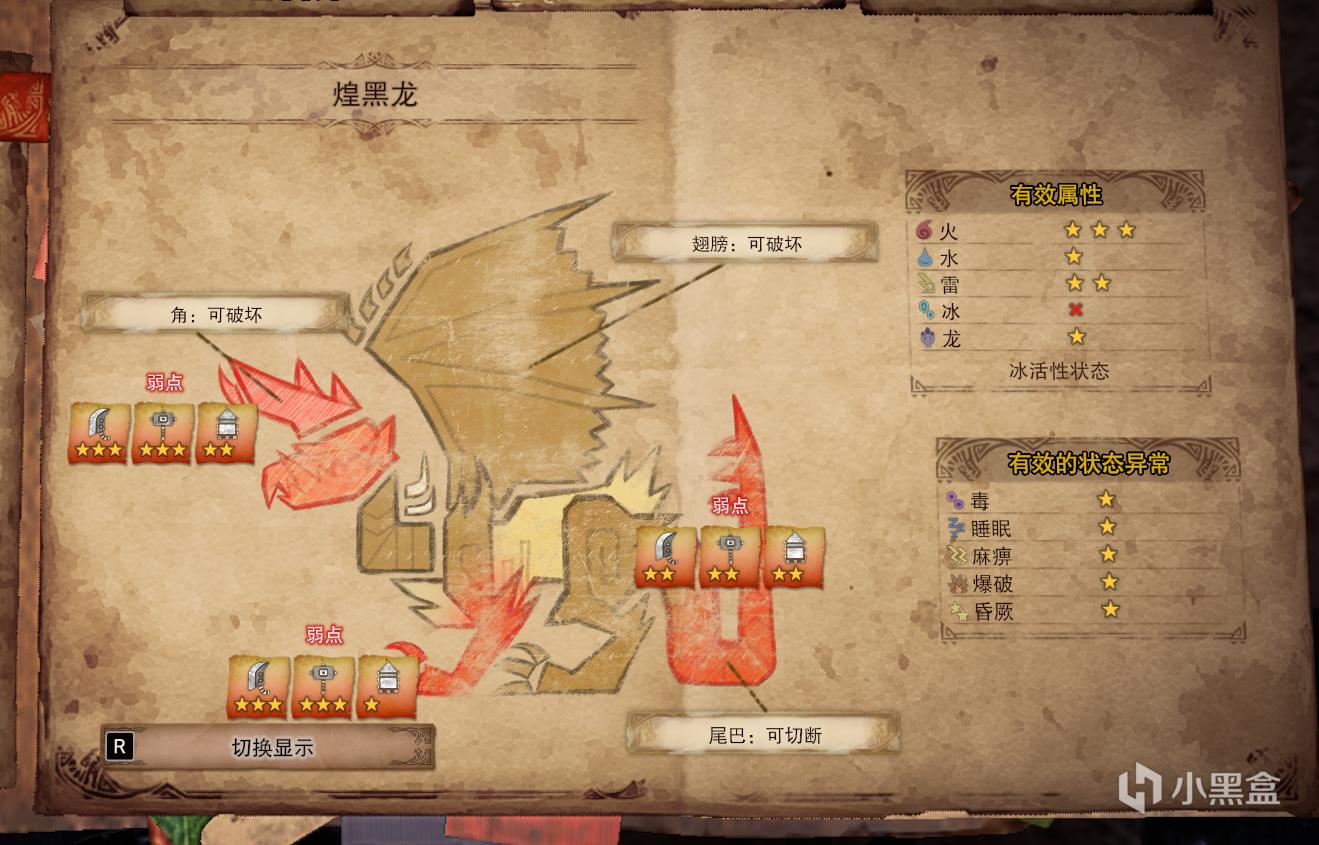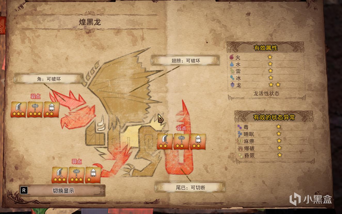 需要注意的雷属性招式时的个人站位,雷属性招式密度大节奏快,不过回三躲起来也非常轻松。双刀修后脚会比较舒服,打出口水硬和倒地的时候要全部集火角,打断角之后煌黑龙在一定时间内就不会再进入某一种活性状态。