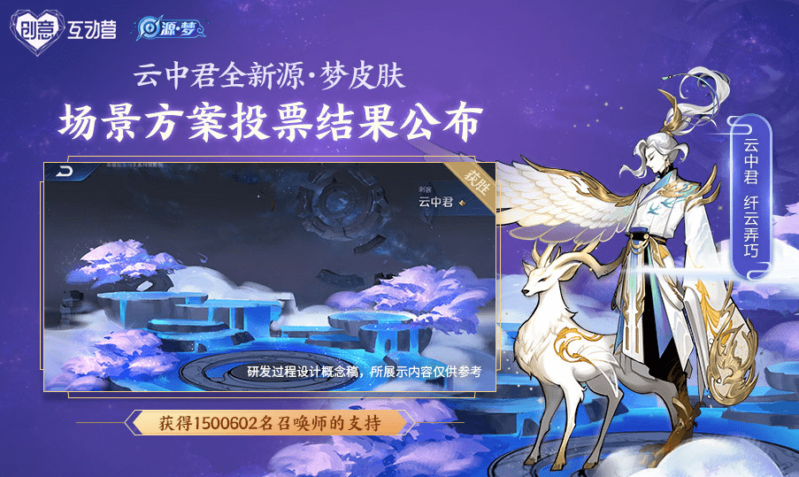 另外这次更新关于云中君这款源梦新皮肤的特效背景投票,也就已经结束了,这款皮肤的最后确定是第二种方案,这两种方案对比来说第二种方案的确是更好看一些,背景中的流水石头和紫色的树木以及云层搭配,看起来非常的仙气飘渺,是这款皮肤该有的特效,这次背景特效确定后,上线应该就不远了。