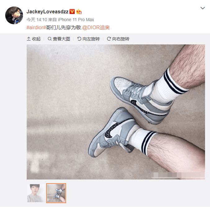 迪奥赠JKL价值过万AJ鞋!阿水穿上后秀自拍,网友:毛裤哪买的?