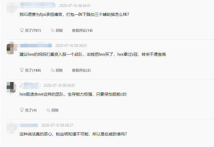 打出这样的效果,很多FPX的粉丝都很失望。不少网友认为,FPX教练战马的BP有问题,是在玩蛇。也有其他网友认为,中单doinb拿到混子英雄就表示他根本不想赢。同时,也有更多的网友表示,LWX的发挥辣眼睛。更有激进的网友表示,既然大家都觉得LWX作用不大,就应该卖掉LWX,换个AD,直接把LWX从FPX开除了。