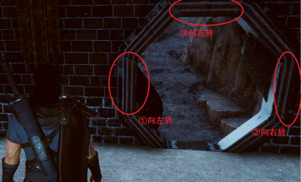 再一直向右转到第二个符号对准上面的门,停下,最后向左转把第三个符号对准门,出小游戏,完成。