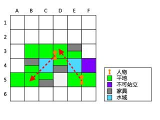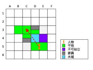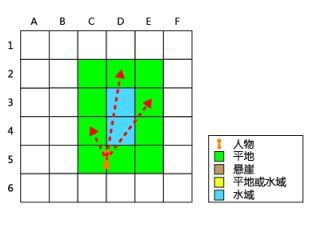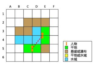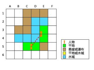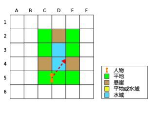当前往C4和D2的路被悬崖阻挡后(也可以是其他阻挡方案,例如D2改为水域,一样没法跳,但改悬崖的效果更好看),人只能跳向E3。