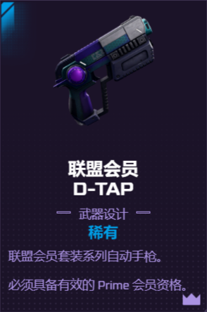 16级:稀有 武器皮肤 D-TAP联盟会员皮肤