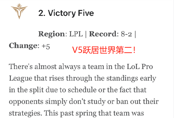 各位召唤师,你们如何看待ESPN最新的战队排行榜呢?V5十年老粉不请自来,期待他们接下来冲进S10世界赛!