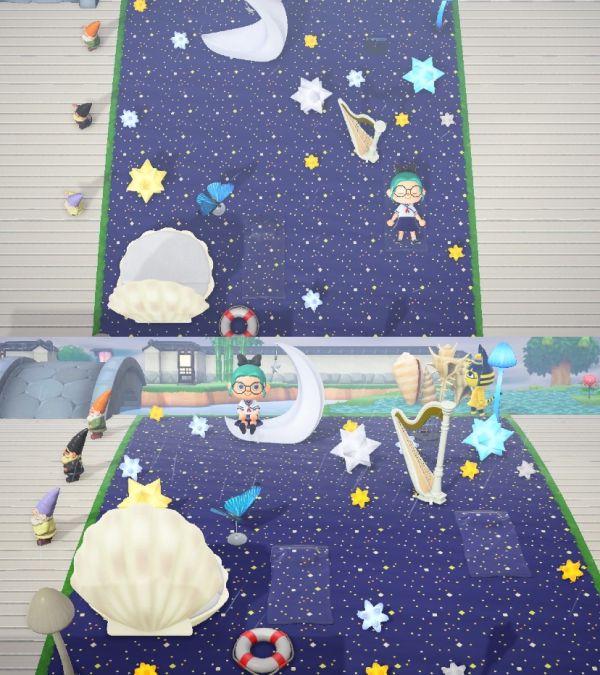 沙坑安排在了路另一边,铺上设计造出星河的感觉。沙滩巾改成地面同色就可以遨游星河啦。