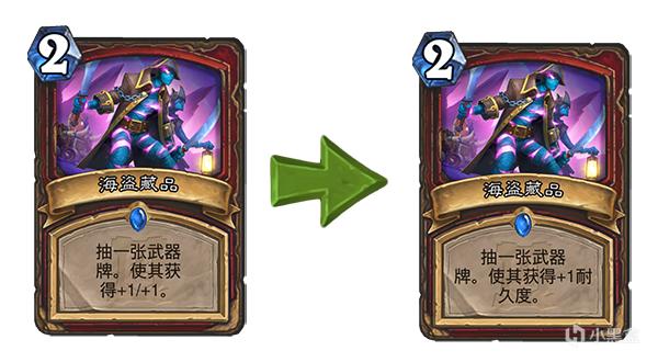 旧:抽一张武器牌。使其获得+1/+1。 → 新:抽一张武器牌。使其获得+1耐久度。