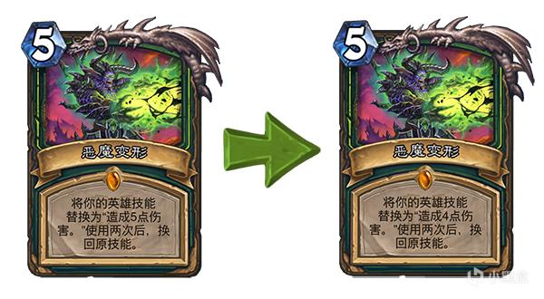 旧:将你的英雄技能替换为“造成5点伤害。”使用两次后,换回原技能。 → 新:将你的英雄技能替换为“造成4点伤害。”使用两次后,换回原技能。