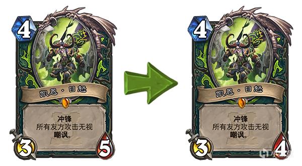 旧:3点攻击力,5点生命值 → 新:3点攻击力,4点生命值。
