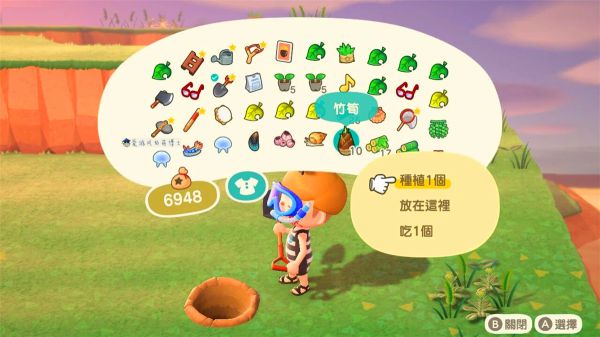 如果大家不想每次都到素材岛上去取得竹子相关的材料,那么博士建议你把“竹笋”挖回家种在自己的岛上!挖个坑,点击种植“竹笋”即可。